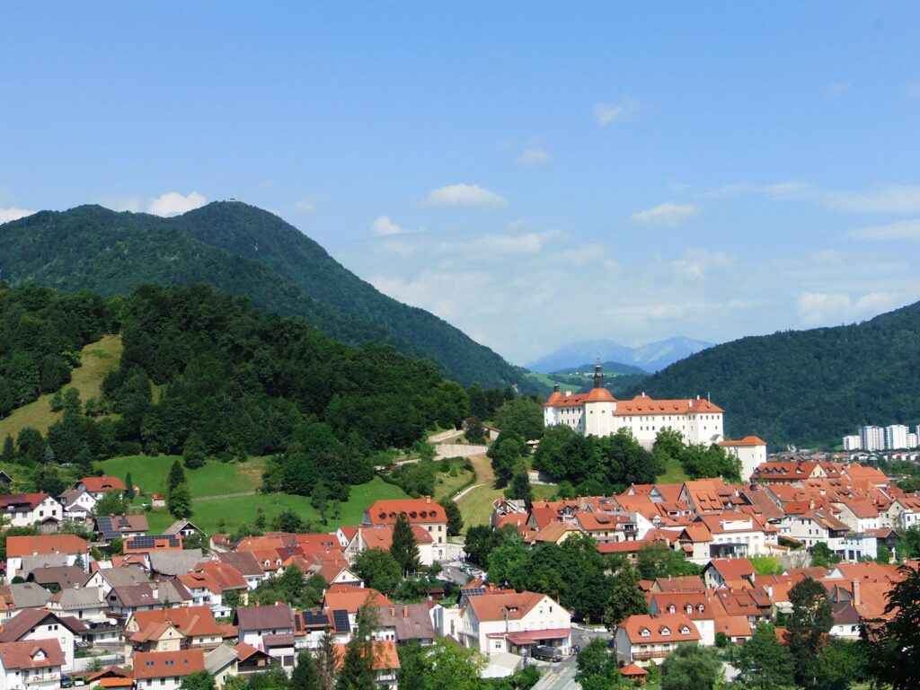 Blick auf den alten Teil von Bischoflack mit der Burg aus dem Jahr 1215